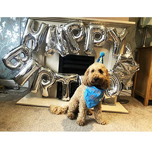 Ottimo accessorio per la festa di compleanno del cane: riceverai 1 cappello con paillettes blu, 1 papillon con colletto e 1 bandana con scritta "Happy Birthday boy" stampata per mostrare il tuo amore. Grande decorazione di compleanno per cani, rende il vostro cane bello e alla moda.