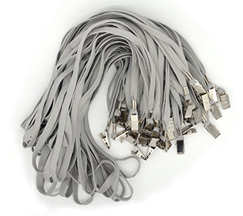Bird Fiy, cordicella per appendere al collo badge e cartellini identificativi, con cordino piatto di cotone da 91 cm e clip a morsetto, 50 pezzi Gray