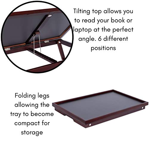 BirdRock Home Bamboo vassoio con tappo nero | colazione servire vassoio da letto pieghevole | Funzione scrivania con ampia inclinazione superiore | vassoio Walnut