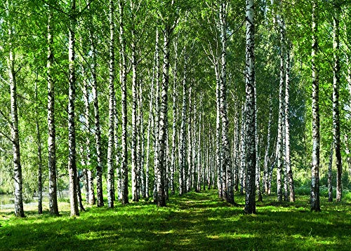 Birkenwald 2738A - Carta da parati fotografica, 400 x 260 cm, paesaggio naturale, autunno, betulla, alberi, lago, foresta, con carta da parati in tessuto non tessuto, decorazione da parete, motivo