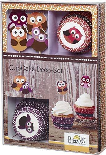Questo materiale decorativo con motivo a gufi alla moda valorizza le decorazioni dei piccoli cupcake con stile