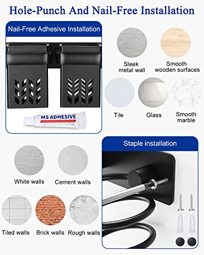 ✔️【Installazione con e senza foratura】La porta asciugacapelli a parete da fissare offre due tipi di installazione. Installazione senza colla per chiodi, non è necessario forare, protegge la parete e aiuta a fissare la staffa dell'asciugacapelli in posizione, si consiglia di lasciarla riposare per 48 ore dopo l'installazione. Forando la parete, fissandola con viti e installando infine il tappo a vite, è possibile migliorare efficacemente l'estetica complessiva.