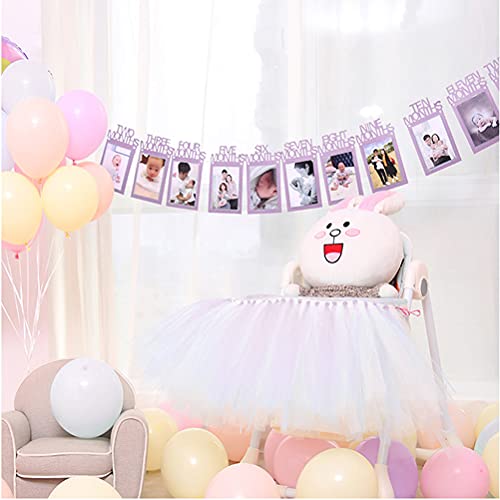 Birthday Baby Photo Album di Foto per Bambini,12 Pack Primo anno Cabina Fotografica Banner di Compleanno Partito Forniture 1-12 Mesi Foto Pietra Miliare Mensile Photo Bunting Bandiera Fotografico Rosa