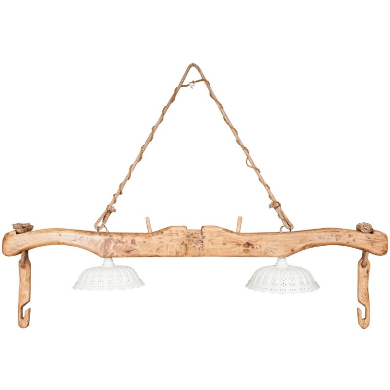 Giogo in legno massello di tiglio di dimensioni L161xPR31xH41 cm. Elettrificato, con due piatti paralume in ceramica si trasforma in un originalissimo lampadario in grado di donare un tocco di stile Country e una soffusa e calda illuminazione a qualsiasi ambiente Grazie alla sapiente e scrupolosa lavorazione artigianale Made in Italy e alla cura dei minimi particolari, sapientemente invecchiato e asciato a mano, presenta tutte le caratteristiche del vecchio attrezzo utilizzato dalle vacche. Interamente lavorato a mano, ogni articolo è da considerarsi un pezzo unico, ideale per chi ama arredare ambienti rustici. Questo lampadario da salotto trova la sua naturale collocazione in un arredamento Country. Rappresenta solo una delle tante proposte di illuminazione interni ed arredamento per casa di Biscottini, tra cui moltissimi mobili per la casa per l'arredamento cucina, l'arredo bagno, l'arredamento del soggiorno e camere da letto, l'arredo ufficio. Arredare casa è alla portata di tutti