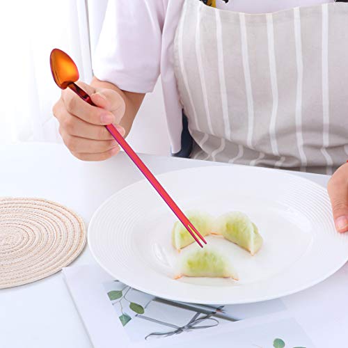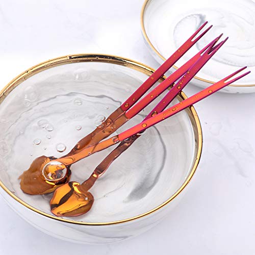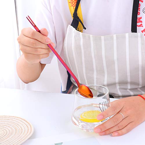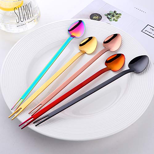 Bisda Cucchiaino da Cocktail Acciaio Inox Colorato,Mescolando Cucchiaio a Forma di Cuore Lungo 225mm 2 in 1 Cucchiaio e Forchetta,Set di 10 per Lattes caffè tè Dessert Sundaes