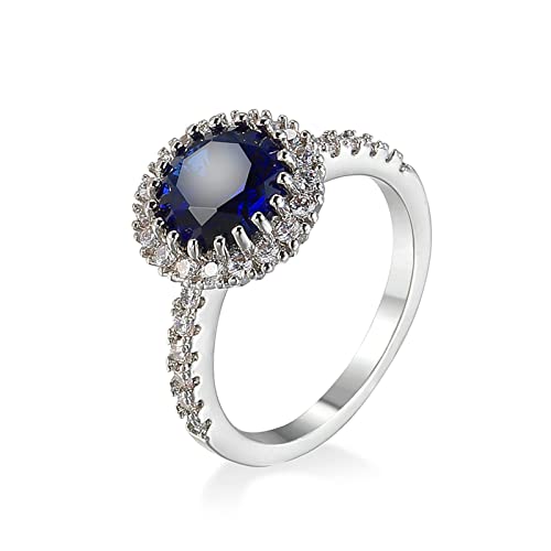 Bishilin Anello Donna Rotonda, Zircone blu a forma rotonda intarsiato Anelli Veretta Zirconia Cubica Placcato in oro bianco, Regalo Femminile di Anello Blu 15