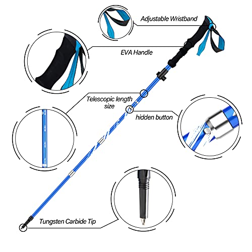 Design compatto, più comodo da trasportare: Il design triplice e retrattile di questi bastoncini da trekking consente di ridurli a 35 cm in modo semplice e veloce. Si adattano a zaini, valigie o borsoni per viaggiare in modo compatto! Quando si usano, i bastoni possono essere estesi rapidamente da 115 cm a 135 cm. Questi bastoni sono disponibili nei colori rosso e blu e sono un regalo eccellente per le persone attente alla moda.