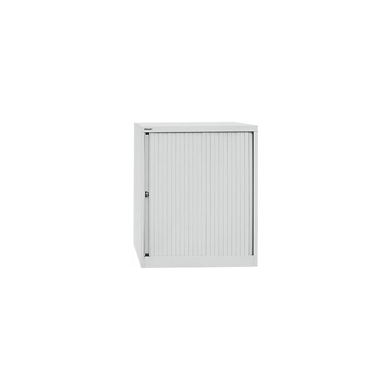 Armadio a serranda Euro, larghezza 800 mm, 2 ripiani, grigio chiaro. Fornitura = montato. Altezza = 1030 mm. Larghezza = 800 mm. Profondità = 430 mm. Colore corpo = grigio chiaro. Materiale corpo = lamiera d'acciaio, verniciata a polvere. Colore serranda = grigio chiaro. Caratteristiche = con serratura. Serratura = serratura a cilindro con 2 chiavi. Numero file raccoglitori = 2.5 pz. Materiale serranda = plastica. Dotazione interna = 2 ripiani. Numero ripiani = 2 pz. Portata per ripiano = 45 kg. Colore ripiani = nero notte. Tipo di porta = serranda orizzontale. Passo di regolazione altezza ripiani = 25 mm. Larghezza interna = 646 mm. Altezza interna = 900 mm. Profondità interna = 395 mm. Spessore ripiani = 23 mm. Spessore del corpo = 0.8 mm. Completi di ripiani in acciaio. Con serratura. Le serrande scompaiono completamente nel corpo. Maniglia a listello nel colore della serranda. Corpo in lamiera d'acciaio spessore 0,8 mm con verniciatura a polvere strutturata e piedini ad altezza