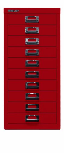 BISLEY MultiDrawer, Serie 29, DIN A4, 10 cassetti, Metallo, 670 Rosso Cardinale, 38 x 27.9 x 59 cm