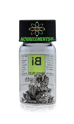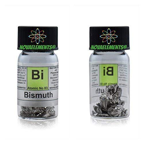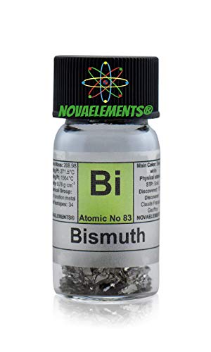 Bismuto metallico elemento 83 Bi, campione puro 10 grammi 99,99% in fiala di vetro con etichetta