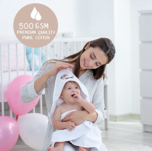 SUPER ASSORBENTE. 100% cotone ultra assorbente. Il suo GSM ad alta densità (450 gr) garantisce massimi assorbimento e asciugatura del tuo bambino in un modo più rapido ed efficiente.