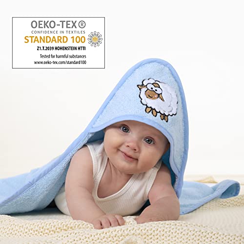 Bisoo Asciugamani Neonato e Neonata - Asciugamano con Cappuccio 80x80 cm per Bambino e Bambina - 100% Cotone Oeko-Tex (Blue)