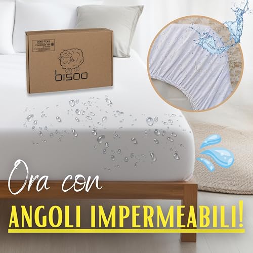 Bisoo Lenzuola Lettino Neonato 60x120 - Lenzuola Culla Lettino Impermeabili (Top+Angoli) 60 x 120 - Lenzuolo Coprimaterasso Impermeabile Con Angoli 100% Jersey OEKO-TEX - 1 Lenzuolino Bianco 120x60 cm
