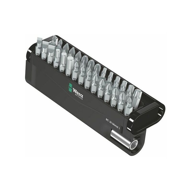 1,2×6,5 Raccordo: 1 pz. Dati tecnici Numero pezzi 30 Tipo di prodotto Utensile bit Profilo di manovra Cacciavite per viti con impronta a croce Phillips Profilo di manovra_ Giraviti per viti con impronta a croce Pozidriv Profilo di manovra_ Giraviti a intaglio Profilo di manovra_ Giraviti per viti con impronta Torx® Denominazione originale prodotto Bit-Check 30 Metal 1