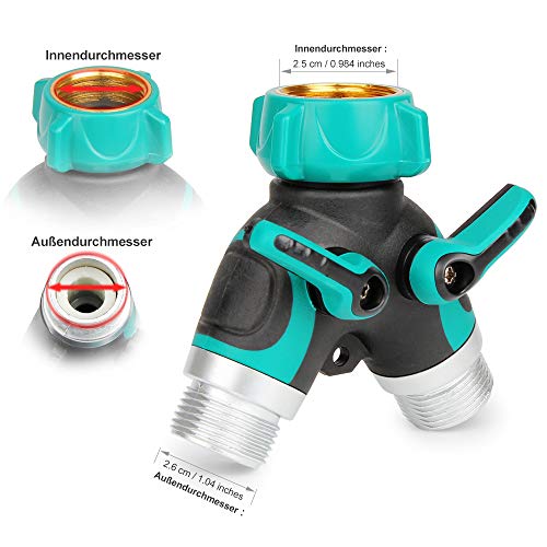 Qualità superiore: lo splitter per tubi da giardino è realizzato in lega di zinco e plastica di alta qualità con una comoda impugnatura gommata. resistenza al calore e al freddo e chimica e durevole. Non arrugginisce né corrode.