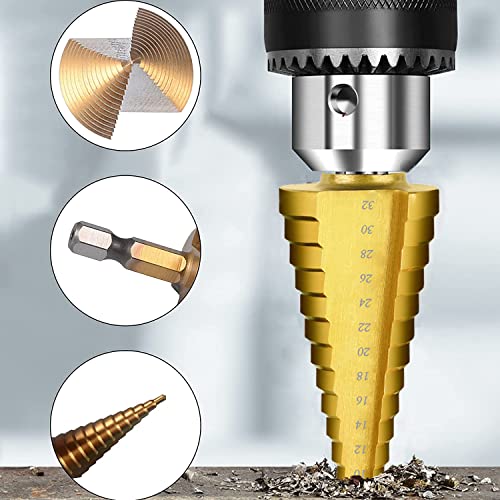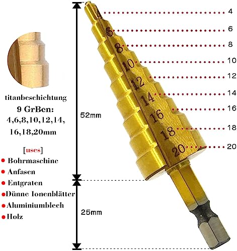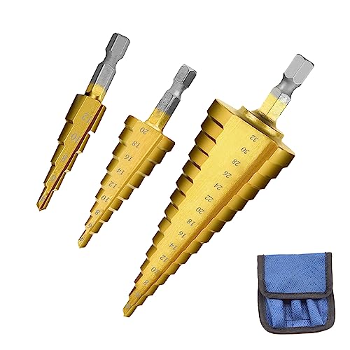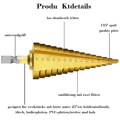 Bituocs Punte per trapano a gradini [10 mm) [15 livelli] per metallo, si adatta a qualsiasi mandrino - Punta conica Ø 5 - 35 mm - Punta per sbucciatura ideale per metallo, legno, plastica, 13 livelli