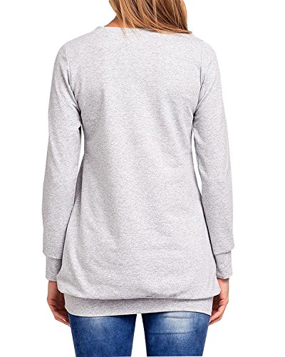 BIUBIU - Pullover da donna con stampa di renna e neve, in cotone Grigio chiaro 50