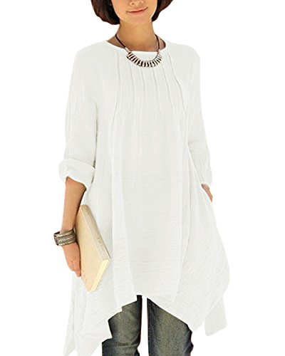 BIUBIU, vestito da donna vintage a maniche lunghe con tasche asimmetriche DE 34-46 bianco 46