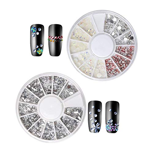 Biutee+7scatole Nail Art con Strass, Set per Decorazioni Nail Art, Misto Dimensioni Unghie Perline, Glitter Strass Pietra, Metallo Borchie Irregolare