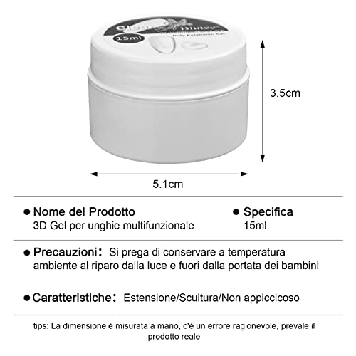 【GEL MULTIFUNZIONALE】 Questo gel per unghie solido può essere utilizzato per l'estensione delle unghie, la decorazione intagliata e in stick. Non sono necessarie clip fisse o altri strumenti, è facile eseguire l'estensione delle unghie da soli. La consistenza morbida può essere impastata su qualsiasi forma o altra decorazione.