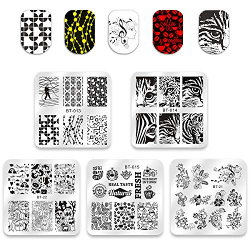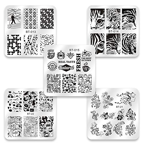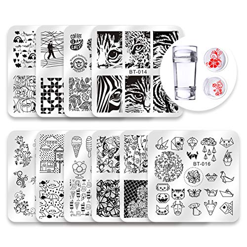 Biutee Set di Nail Art Stamping 10pcs Nail Template Piastra per Unghie+ 1pcs Raschietto+1pcs Stamper Per manicure (decorazione delle unghie con foglie, fiori, animali)