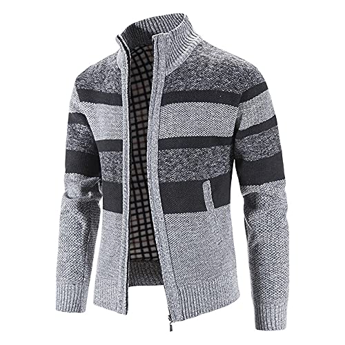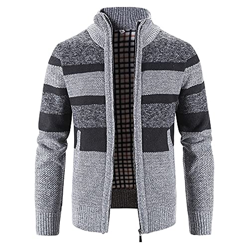 Biutimarden Giacca Cardigan Lavorato a Maglia da Uomo Giacca Stand Manica Lunga Maglione Collo con Cerniera Completa Felpa Calda Casual Invernale Elegante Cappotto Caldo (M, Grigio Chiaro(8829))