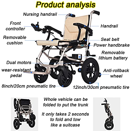 BIUYYY Carrozzine elettriche Pieghevoli Leggere 14.7kg con 2 Controller e Freno elettromagnetico e 2 batterie al Litio e 4 Pneumatici in Gomma Sedia a rotelle per Tutti i Terreni Carico Massimo 100kg