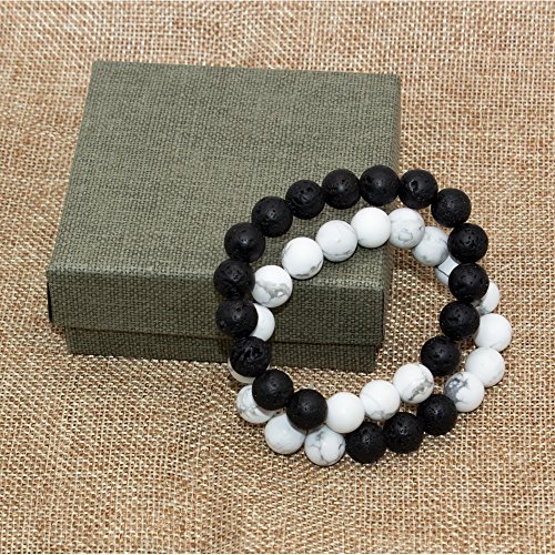 Bivei lui e lei coppie Distance - Diffusore howlite lava bracciali, calma, Stree sollievo, protezione, yoga meditazione, Base, colore: A Pair, cod. anbivi11121819