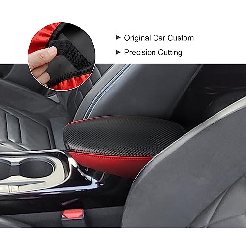 Modelli compatibili: compatibile con Nissan Juke F16 2020-2023, copertura per bracciolo, in fibra di carbonio, struttura media, in pelle rossa, bordo rosso, linea rossa, 1 chiusura in velcro