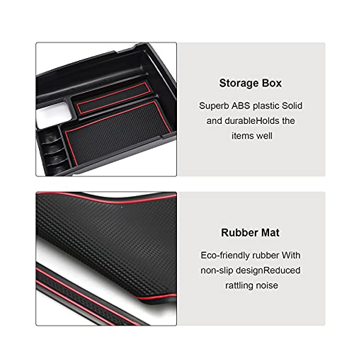 BIXUAN Scatola Organizer compatibile con Nissan X-TRAIL T32/NT32 2014-2021+ Immagazzinaggio per Console Centrale,Bracciolo Secondario,Braccioli con Tappetino Antiscivolo rosso