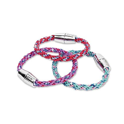 Include 1 Kumi Kreator, 60 rulli, 7 chiusure, 14 tappi di estremità, 2 fogli di adesivi, 2 decorazioni per nappe, 2 basi per nappe, 2 guide di design, 1 righello di misura dei bracciali, 1 libretto guida