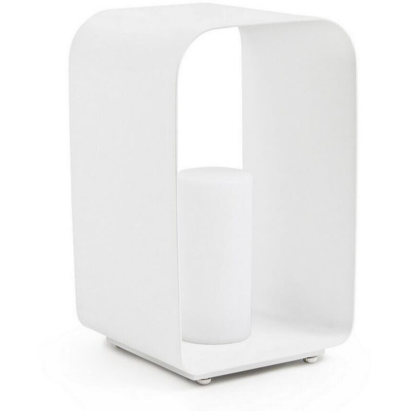 Alluminio verniciato a polvere (poliestere). lampada led, cavo usb e telecomando a distanza inclusi. possibilita' di scelta tra quattro colori primari (rosso, verde, blu e bianco) per un totale di sedici tonalita' diverse. possiblita' di scelta tra cinque giochi luce (solida, lampeggiante, intermittente, sfumata e soffusa). tempo di utilizzo: da sei a otto ore. batteria ricaricabile. ip65. per uso interno ed esterno.