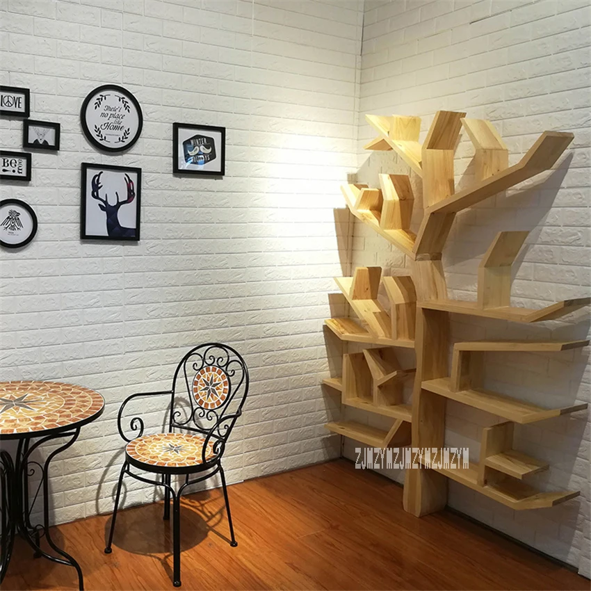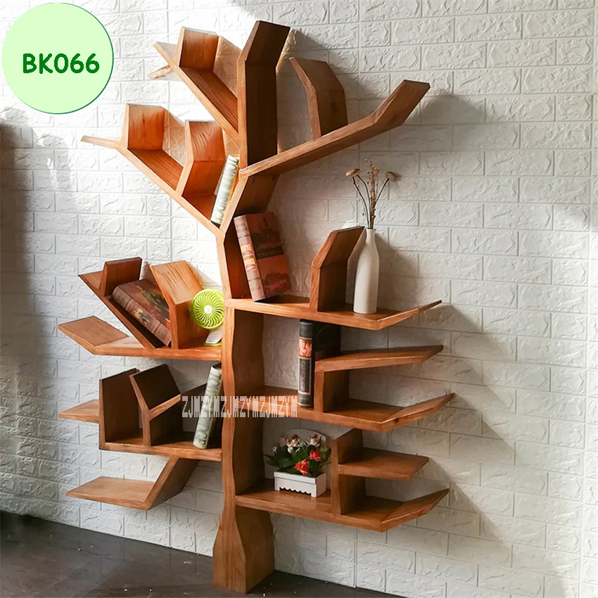 BK066 Creative Solid Wood Bookshelf Living Room Bedroom Wall Decorative Shelf Bookcase DIY Tree Shape Wooden Books Storage Shelf