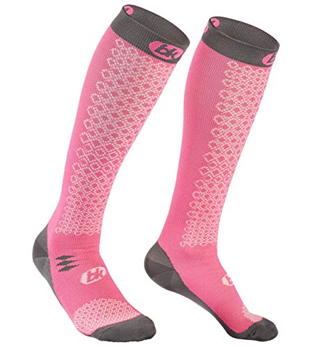 BKNEES Calze a Compressione Graduata Unisex, per Yoga, Calcio, Corsa, Sport, Recupero, circolazione, Infermieri, Gravidanza, Viaggi in Aereo (20-30 mmHg) (Rosa/Grigio, L)