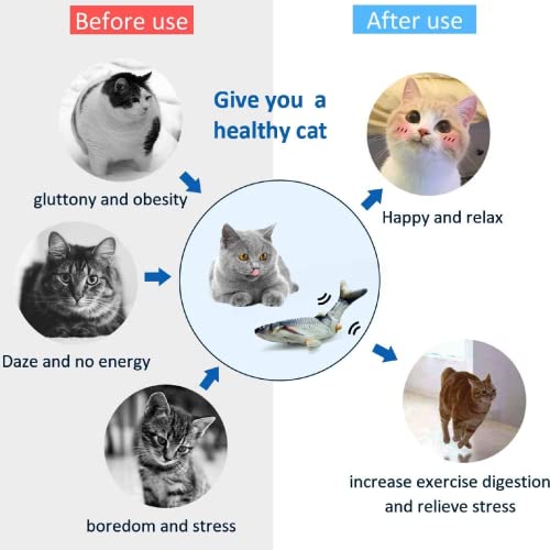 GIOCATTOLI ELETTRICI PER PESCI: ogni volta che il tuo gatto tocca i giocattoli per gatti da interno, il sensore di movimento integrato del giocattolo per gatti pesci oscillerà o oscillerà automaticamente per attirare l'attenzione del gatto. Giocattoli per gatti che rafforzano anche l'esercizio quotidiano del gatto e lo rendono più vivo e sano.