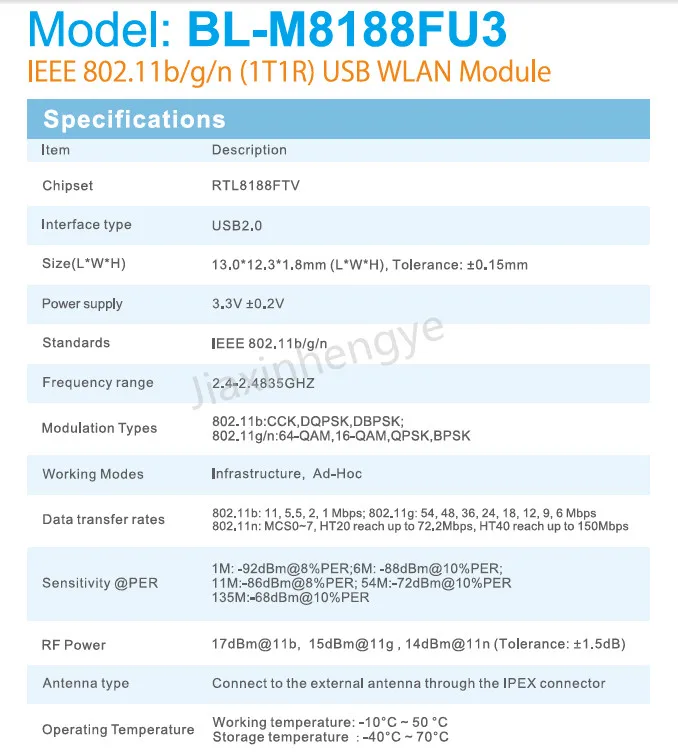 BL-R8188FU3 RTL8188FTV Wifi Module USB Wlan Module Wireless Original and New