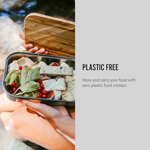 ECOLOGICO: design robusto e 100% plastic-free. Il contenitore è realizzato in acciaio inossidabile di alta qualità con coperchio in bambù antibatteric
