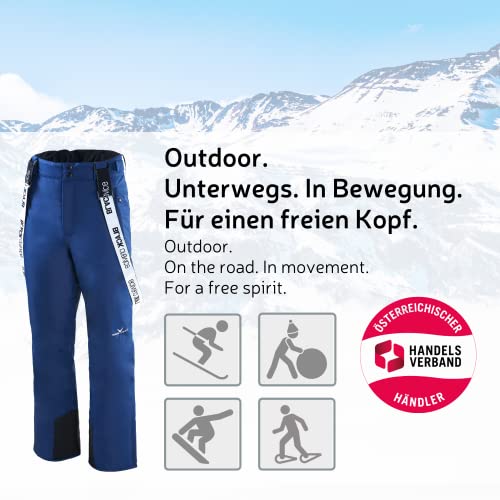 Elevato comfort: i nostri pantaloni da neve da uomo con chiusura in velcro per regolare la larghezza e le bretelle, nonché con protezione dei bordi e paraneve garantiscono una piacevole vestibilità