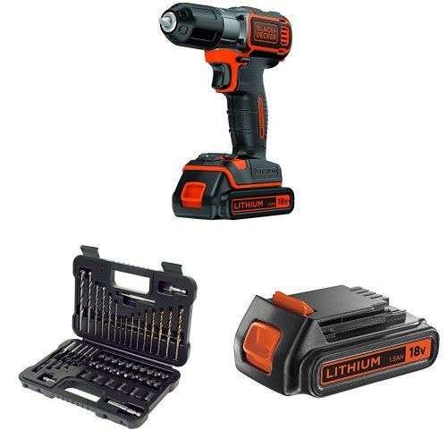 BLACK+DECKER ASD184KB-QW Trapano/Avvitatore Autosense con Doppia Batteria, 18V Litio, 1.5Ah