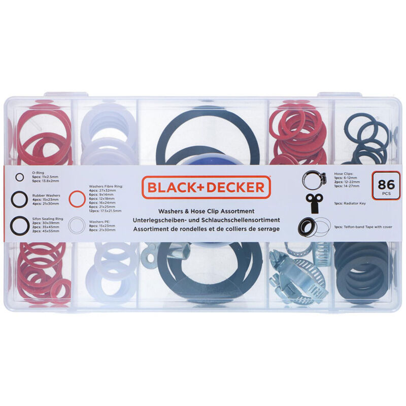 Assortimento di rondelle e fascette stringitubo di tubo flessibile, 86 pezzi ass black+decker