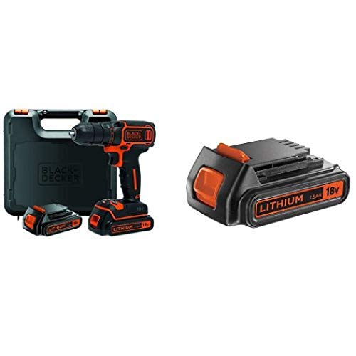 BLACK+DECKER BDCDC18KB-QW Trapano Avvitatore, con Doppia Batteria al Litio, 18 V, 1.5 Ah, Valigetta, Arancione + BL1518-XJ Batteria al Litio, 18 V, 1.5 Ah