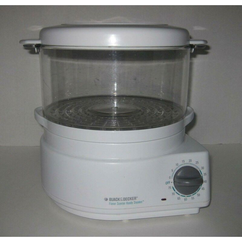 Descrizione La Genuina Black&Decker HS90 e' la macchina per cuocere a vapore per cucinare i cibi dal riso alla carne alle verdure. Provvista di timer e dei suoi libretti di manutenzione e guida alla cottura.