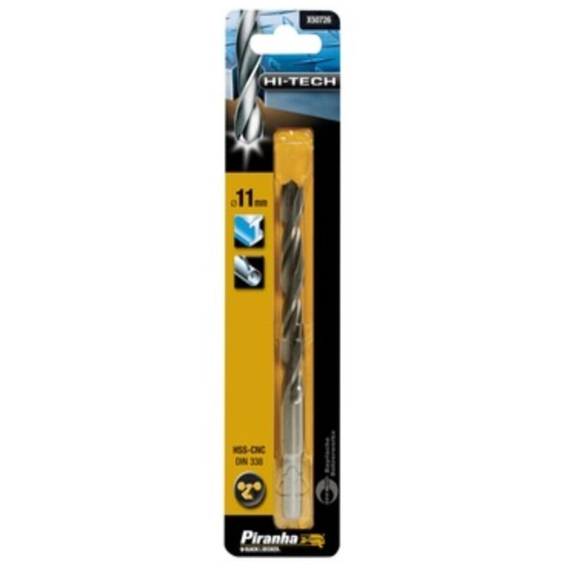 BLACK&DECKER - PUNTA PER TRAPANO HSS-CNC 11MM*** La punta per metallo Piranha HI-TECH x50726-qz 11mm è una punta ideale per forare acciaio dolce, lamiere sottili e metalli non ferrosi La punta è realizzata in acciaio ad alta velocità (HSS) e ha un diametro di 11 mm. L'angolo di affilatura della punta della punta per metallo Piranha HI-TECH x50726 è formato con precisione a 124°. Il trapano è rettificato anziché rullato ed è quindi molto più resistente, fora più velocemente e offre una finitura migliore.