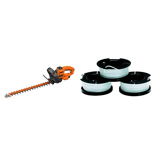 BLACK+DECKER Tagliasiepi Elettrico Lunghezza Lama 50 Cm, Impugnatura Ergonomica 500 W, Behts301-Qs & A6485-Xj Kit 3 Rocchetti Filo Nylon Reflex, Accessori Per Tagliabordi, 3 X 10 M Di Filo