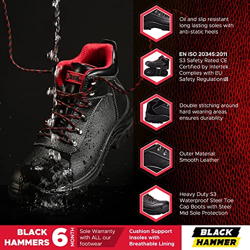 BLACK HAMMER Stivali Maschili in Pelle Scarpe Antinfortunistiche Impermeabili S3 SRC Scarpe da Lavoro in Pelle con Punta in Ferro Uomo 7777