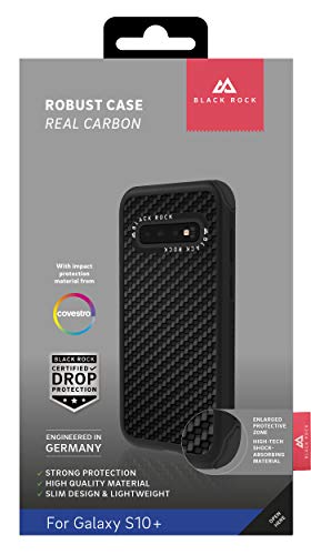 Black Rock - Custodia protettiva Robust Real Carbon per Samsung Galaxy S10+, in plastica, ideale per attività all'aperto e/o sport, protezione a 180°, colore: Nero