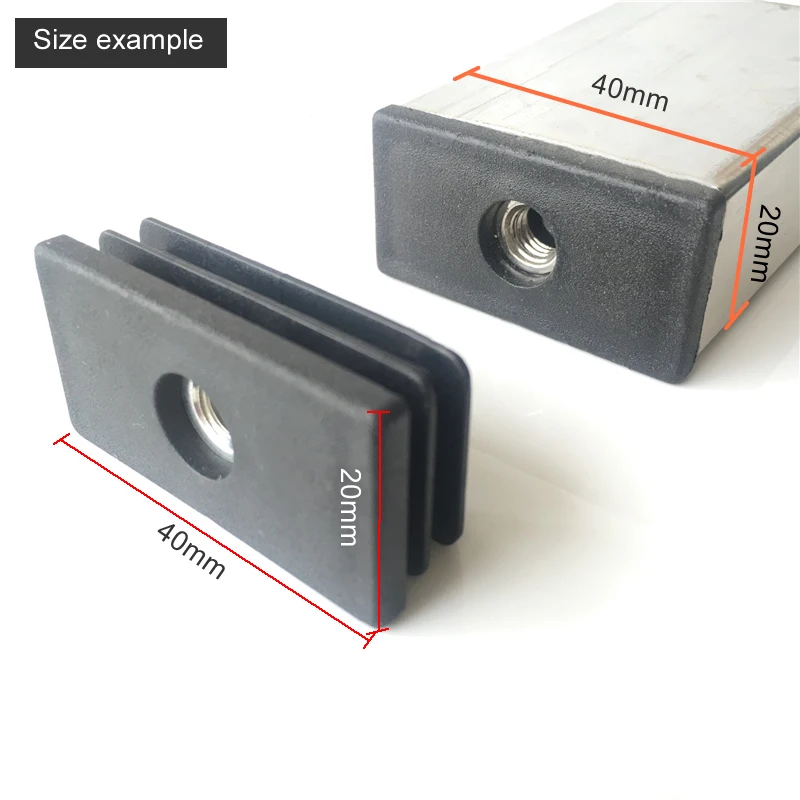 Black Square tube plug, With M8 screws hole,plastic plug, Table chair foot pad, Furniture foot support