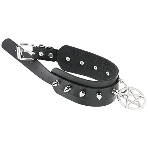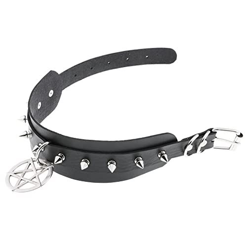 Black Sugar Chiodi Catena Anello Ras de Cu Vintage Punk Ecopelle solida Choker Gottica Collana Ferro Cerchio Nero Torre di Cu Pentagramma Deguita unisex, Borchie Pentagramma, Taglia unica