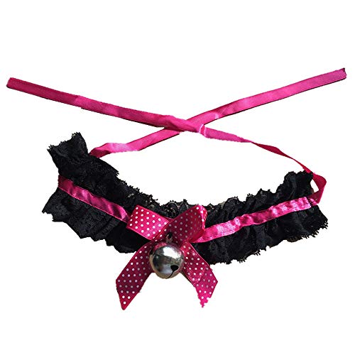Black Sugar - Collana choker lavalliera per travestimento da sera, gatto, girocollo, nastro in pizzo, nastro Neko Lolita, catena a forma di ciliegia, fiocco, campanellino Rosa M-L