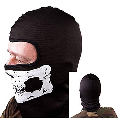 Black Sugar Unisex Ghost - Passamontagna nero teschio di morte - Maschera integrale antivento antipolvere, antipolvere, per moto, moto, cosplay, feste, ciclismo, escursionismo, sci, poliestere